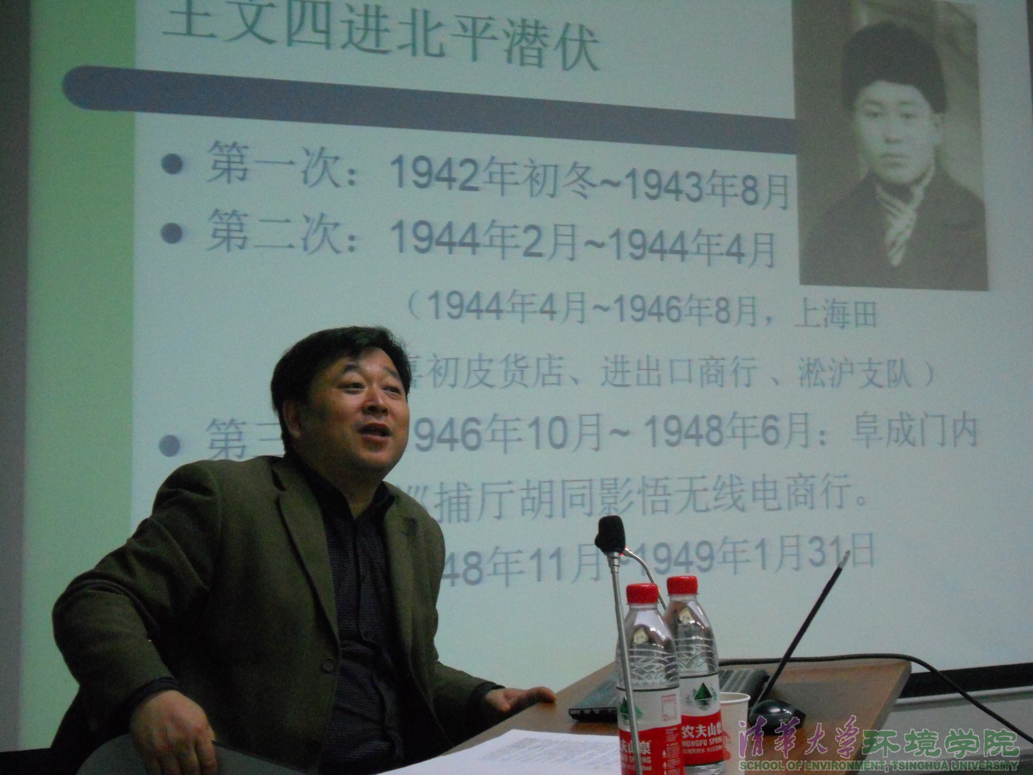为了使党员、团员更加深入地学习我党的历史,了解新中国成立前我党所走过的艰苦道路,2013年3月27日晚7时,由MK·体育(中国)官方网站环研五党支部在环境节能楼119会议室主办了党史主题系列报告第一场:《真实的潜伏——中共北平地下斗争揭秘》。当晚,北京市委党史研究室宣传教育处处长刘岳同志受邀,为环境学院的同学们还原历史原貌。本次报告由环境学院党委副书记刘建国同志主持。