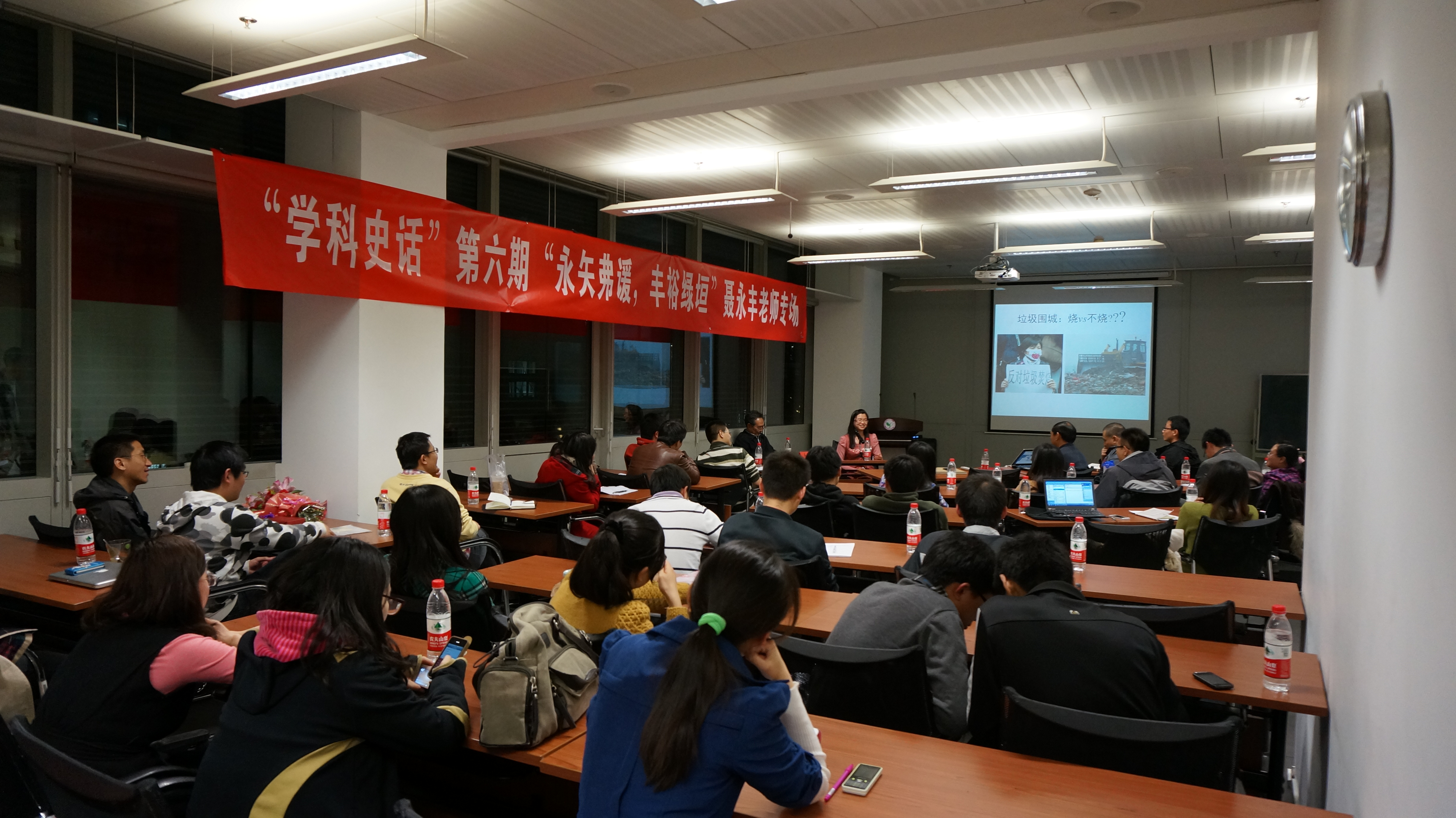 2013年4月16日晚,清华大学“学科史话”第六期聂永丰老师访谈在中意环境节能楼209会议室举办。本期活动以“永矢弗谖,丰裕绿垣”为主题,通过访谈环境学院聂永丰教授,了解我国固体废物管理和我校固体废物处理处置及资源化专业的发展历程。本次活动由清华大学研究生会主办,环境学院研究生会、环境学院研团总支承办,环研三党支部协办,环境学院刘彦君同学主持。聂永丰教授开山弟子、环境学院教师刘建国,聂永丰教授关门弟子祁光霞同学等四十余位师生参加。