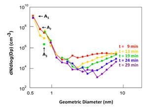 大气分子、分子团簇和颗粒物粒径分布动态变化图