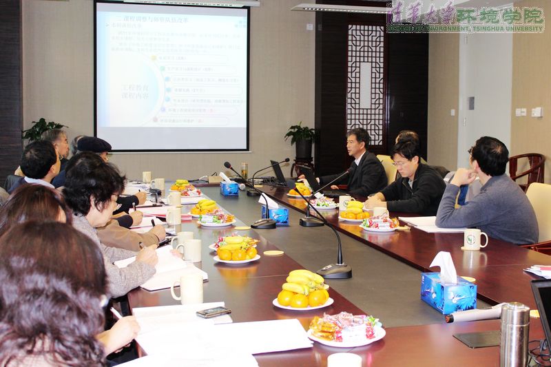 左剑恶作为主讲人进行汇报。他首先介绍了实施“卓越工程教育改革计划”的背景,分析了国内环境学科的发展状况以及同欧美国家环境学科相比之下的不足之处,进而提出了环境学院培养高端复合型工程师后备人才的目标。