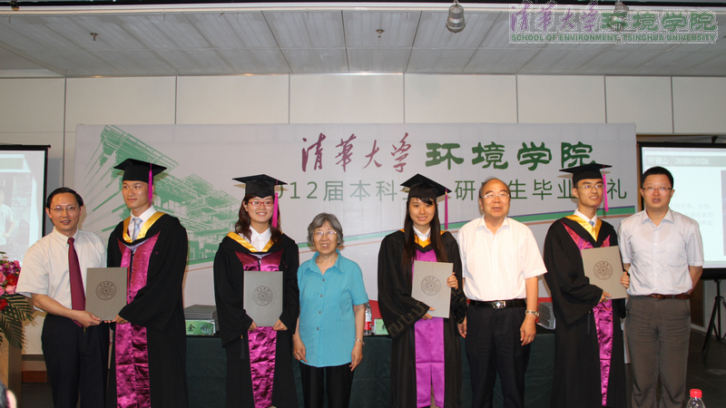 清华环境学院7月4日讯 (记者 苏珍爱) 7月4日,环境学院2012届本科生研究生毕业典礼在环境节能楼东一厅举行。环境学院教授、中国工程院院士钱易、郝吉明,院长余刚,院党委书记杜鹏飞,副院长段雷、蒋建国,党委副书记刘建国、刘文君及校友代表、同济大学环境科学与工程学院院长周琪等出席毕业典礼,本科生及研究生近200人参加典礼。副院长左剑恶主持毕业典礼。