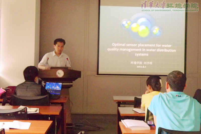刘书明作题为《给水管网中水质管理传感器的优化配置》(Optimal sensor placement for water quality management in water distribution systems)的报告。他介绍了给水管网中的饮用水安全问题,指出我国通常意义上的饮用水安全是指饮用水中的各项指标达标,而饮用水安全在另一层面上也包括饮用水突发事故应急处理,并详细阐述了给水管网水质管理中在线监测点的优化布置方法。