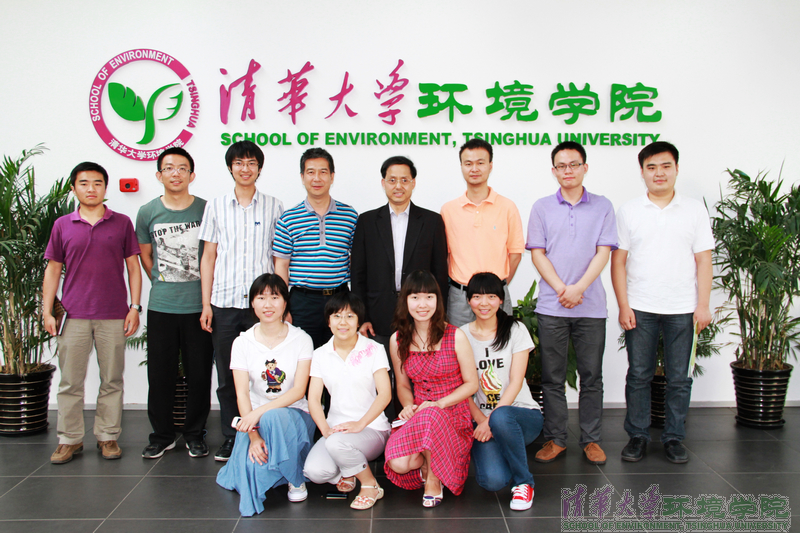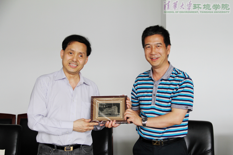 会谈后,左剑恶代表环境学院向谢灿华律师赠送礼物。谢灿华律师同大家一起合影,并在学院几位师生的陪同下参观了环境学院院馆——中意清华环境节能楼以及部分实验室。