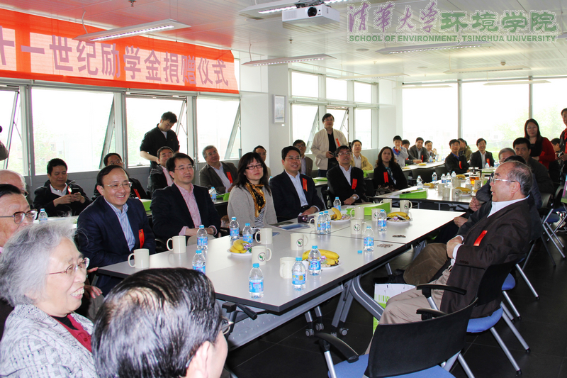 清华环境学院5月6日电 (通讯员 黄森辰) 4月29日下午,环境学院1982级二十一世纪励学金捐赠仪式在节能楼举行。清华大学校长陈吉宁、环境学院郝吉明院士、院长余刚、院党委书记杜鹏飞、82级的任课教师和校友代表出席了捐赠仪式。