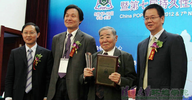 图为南开大学戴树桂教授获颁“消除持久性有机污染物杰出贡献奖”。