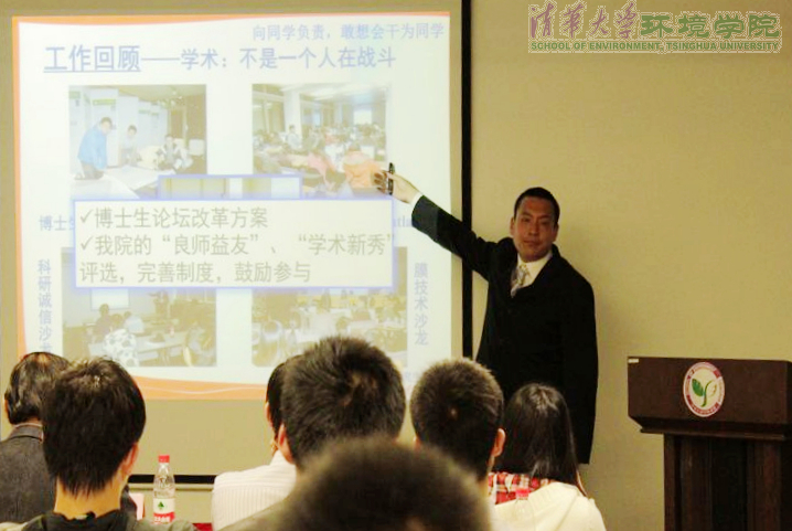 环境学院研究生会主席陈坦代表环境学院第十四届研究生会向大会作工作报告。一年来,第十四届研究生会坚持“做最贴心最透明的研会”、“敢想会干为同学”、“为同学服务,向同学汇报”的理念,开放信息,开拓资源,传承与创新并重,在学术、生活、文体活动、权益维护沟通等方面做了大量工作,也带出了一支清新阳光能战斗的团队,赢得了同学们的好评。