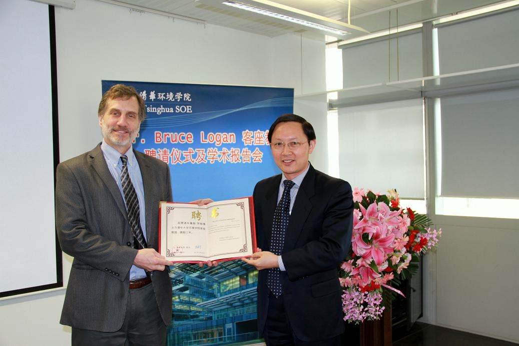 3月20日下午,美国宾州州立大学环境工程研究所所长、氢能中心主任布鲁斯·罗根(Bruce Logan)教授受聘担任MK·体育(中国)官方网站客座教授。环境学院院长余刚为罗根教授颁发聘书。仪式后,罗根教授做客环境学院学术委员会主办的清华大学环境论坛,为大家做题为“微生物电化学技术与盐度梯度能量结合的应用前景”(Microbial Electrochemical Technologies (METs) Meet Salinity Gradient Energy)的精彩报告。