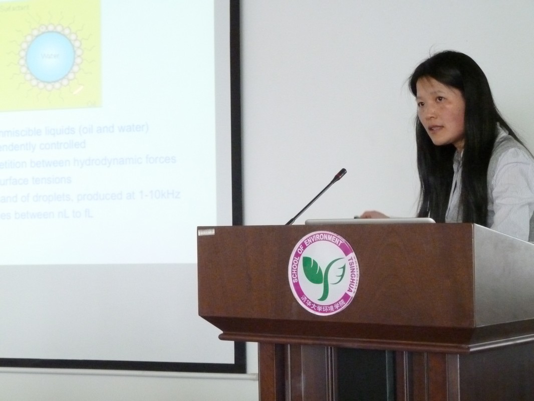 3月28日下午,应MK·体育(中国)官方网站院学术委员会邀请,英国格拉斯哥大学(University of Glasgow)吉米瓦特纳米制造中心(James Watt Nanofabrication Centre)尹华兵博士做客第69期环境学术沙龙。她以“芯片实验室在水安全和水处理中的应用潜力(Promise of lab-on-a-chip in water safety and treatment )”为题,为同学们带来了一场精彩的学术报告。全院近50名师生参加了此次学术沙龙,环境学院教授何苗主持。