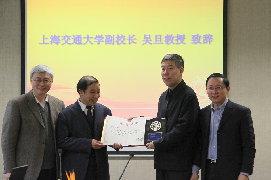 图为上海交通大学为顾夏声院士颁奖,张晓健教授代领。