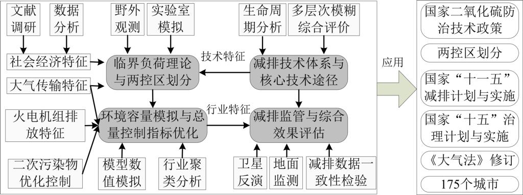 2、创立国家二氧化硫总量减排指标分配理论与技术方法;构建基于酸沉降临界负荷的全国总量减排指标分配方法和基于排放绩效的行业总量减排指标分配方法。
