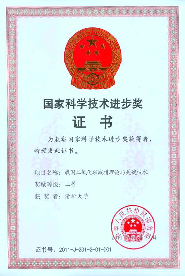 MK·体育(中国)官方网站郝吉明院士、贺克斌教授、王书肖研究员、段雷教授等完成的“我国二氧化硫减排理论与实践”项目获得2011年度国家科技进步二等奖。