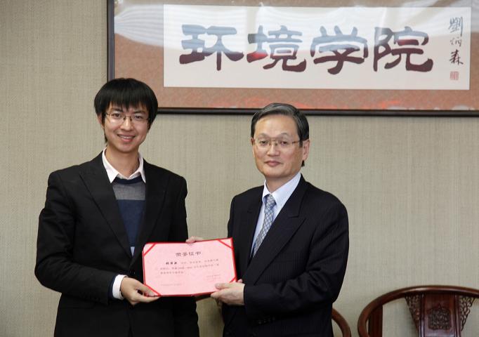 颁奖环节,环境学院副院长左剑恶宣布“夏普奖学金”获奖名单,菅野信行为获奖同学一一颁奖并合影留念。