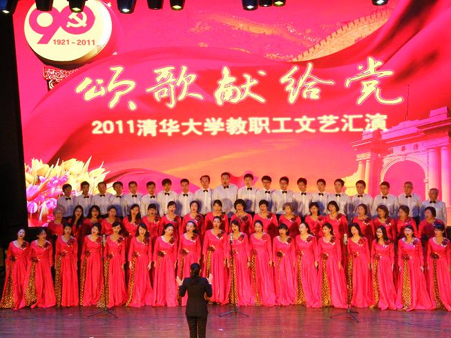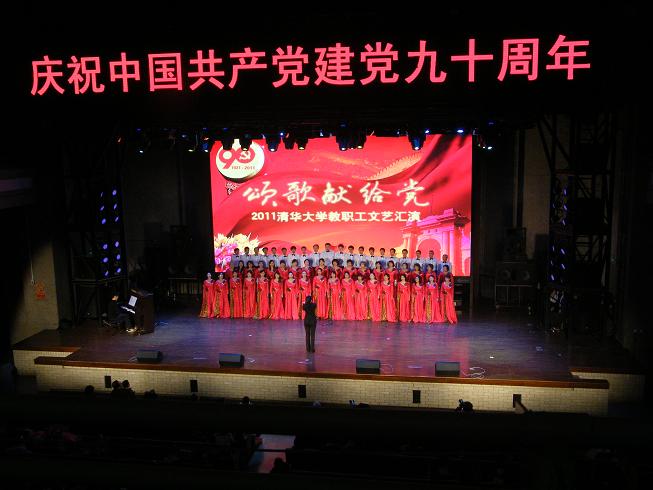 为庆祝中国共产党建党90周年,清华大学于12月14日和15日两天在大礼堂举行“颂歌献给党”——2011年清华大学教职工文艺汇演。此次文艺汇演共参演41个节目,是近几年来参演节目最多的一次。全校52个单位3000多名教职工参加此次活动。 (文/韩国芬、苏珍爱,图/王志强)