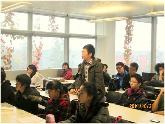 随后,在向同学们简略介绍了景色优美而历史悠久的伊利诺伊大学后,斯诺因克教授向大家揭示了美国饮用水方面存在的问题,如:水资源短缺、年久失换的饮用水供应系统、由于水运输而造成的能耗以及废水利用问题等。这些都使同学们认识到:水资源问题是一个全球性的问题,解决水资源问题刻不容缓。