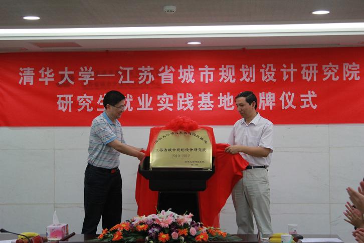 揭牌仪式开始,邹军首先致欢迎词。他简要回顾了自1978年成立以来,伴随我国的改革开放和城市规划事业的发展,江苏规划院走过了一段光辉的历程。他特别指出,江苏规划院十分重视同高校加强合作,已经与南京的高校建立了良好的合作关系。在此基础上,江苏规划院迫切希望打破地域局限,加强与外地高校、特别是综合性大学和具有专业特色大学的合作。邹军还强调,江苏规划院非常重视低碳、生态理念在城市规划中的融会和表达,已经组建研究团队开展前期工作,希望把江苏规划院打造成国内低碳、生态城乡规划方面的学术基地和倡导者。要达成这一发展目标,迫切需要清华大学这样的高校为江苏规划院输送更多具有专业技术特长和交叉学科视野的人才。最后,邹军感谢清华大学对江苏规划院的信任,希望本院员工与参加就业实践的研究生互相学习、共同进步,欢迎清华大学毕业生选择江苏规划院作为事业发展的平台。