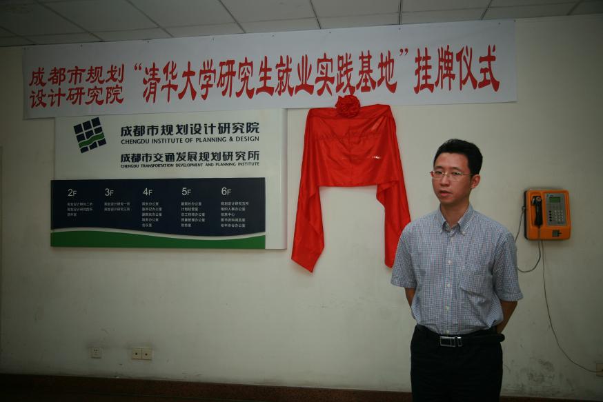 成都规划院院长、我校环境学院1987级校友胡滨首先致辞。他以成都规划院院长和清华大学校友的双重身份对母校师生访问成都规划院并建立研究生就业实践基地表示欢迎。随后,胡滨介绍了成都规划院的基本情况,描绘了未来20年跻身全国一流、国际知名规划设计院的发展目标,并指出,高素质人才队伍是实现这些发展目标的重要保障,与清华大学建立研究生就业实践基地正是实现这一目标的一项重要举措。他认为,建立研究生就业实践基地是一项双赢的举措,它既为研究生走出校园、接触社会、了解行业、化理论知识为实践经验提供了平台,也为用人单位识才、选才、用才以及加强与高校的产学研合作提供了机遇。最后,胡滨希望参加就业实践的同学积极向一线的规划师学习,在实践中收获知识、收获友谊。