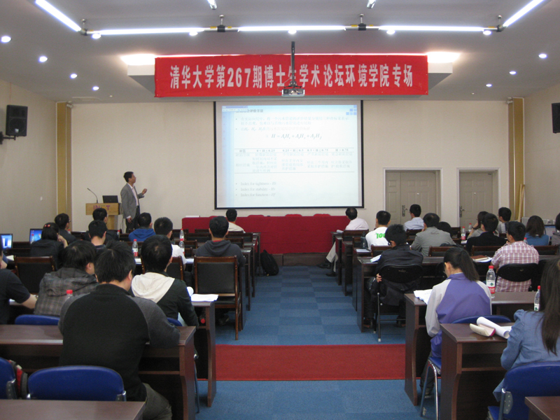 清华大学博士生学术论坛第267期——环境学院专场于2011年5月13日-15日在昌平虎峪风景区清华核研院招待所成功举办。本次论坛的主题是“绿色科技•绿色发展•绿色未来”,组委会邀请到环境学院副院长左剑恶、党委副书记刘建国、研究生工作组组长孙傅、教授杨云峰以及三名博士后老师,60余名博士研究生参加了本次论坛。