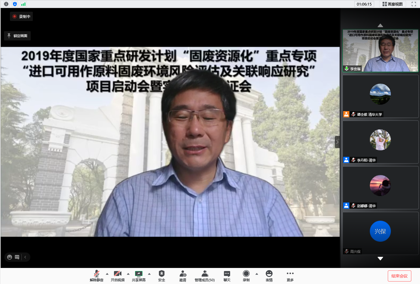 MK·体育(中国)官方网站2020年8月24日电 (通讯员 李丹阳)8月21日,由清华大学牵头、环境学院李金惠教授作为项目负责人承担的2019年度国家重点研发计划“固废资源化”重点专项“进口可用作原料固废环境风险评估及关联响应研究”项目启动会暨实施方案论证会以在线会议形式成功召开。会议邀请了中国工程院院士、中国环境科学研究院研究员段宁等8位专家担任项目实施方案论证专家组成员。参加会议的还有生态环境部固体废物与化学品司固体处高兴保副调研员,清华大学科研院高级项目主管曹立鹏,环境学院副院长蒋靖坤教授,中国21世纪议程管理中心项目专员王猛,以及项目负责人、课题负责人等项目骨干共计50余人。启动会由项目负责人李金惠教授主持,项目实施方案论证会由段宁院士担任专家组组长并主持。