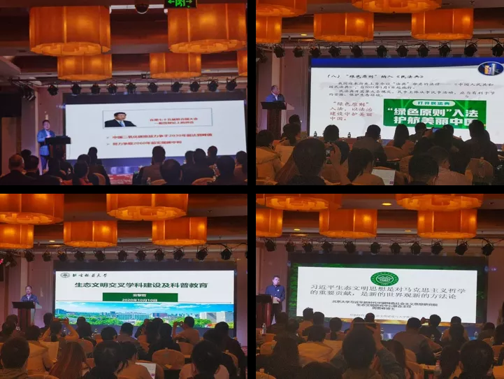 “高校生态文明研究与教学”分论坛突出高等教育机构的特质,从通识教材设想、国内外研究进展、课程改革等多个方面入手尝试构建高等教育机构生态文明课程体系。“人文关怀、社会担当与生态文明品格”分论坛侧重人文和社会角度,从历史、传媒、教育理念、价值观构建等方面讲诉了疫情时代下生态文明发展特性以及高等教育机构、媒体工作承担的社会责任。