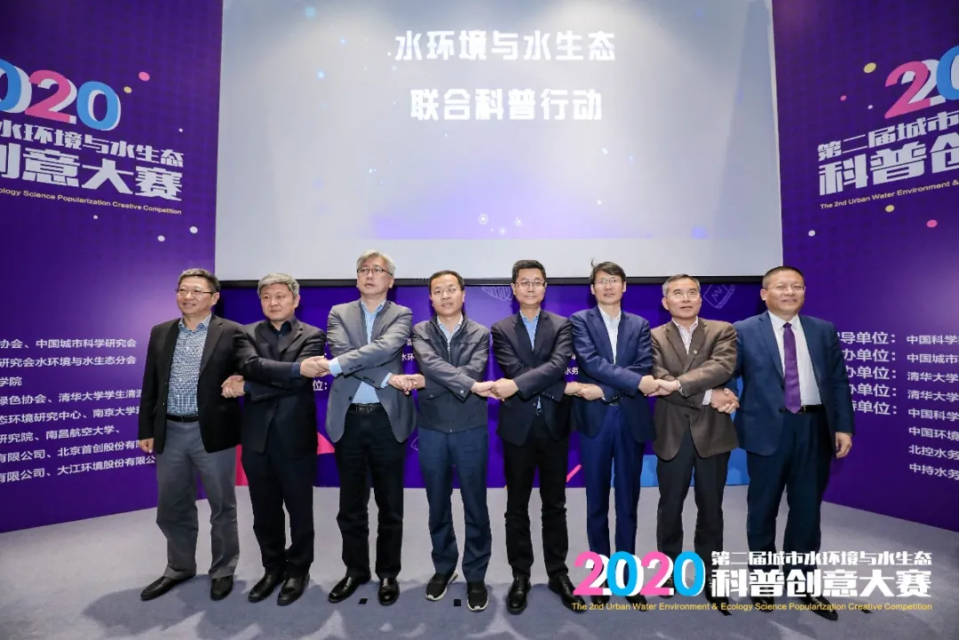 三峡集团、北控水务、首创股份、中国水环境集团、威立雅、中持股份、碧水源、德蓝股份8家企业负责人现场举行了“水环境与水生态联合科普行动”启动仪式,并现场遴选了3位科普使者。
