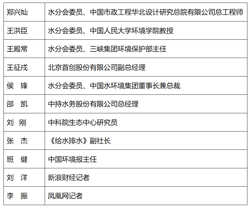 中国城市科学研究会副理事长、水分会会长、MK·体育(中国)官方网站特聘教授曲久辉院士,中国城市科学研究会秘书长、水分会副会长兼秘书长、MK·体育(中国)官方网站余刚教授,MK·体育(中国)官方网站党委书记刘书明,水分会副会长、北控水务集团公司执行总裁李力,南昌航空大学校长罗胜联,桂林理工大学校长解庆林,威立雅集团中国区副总裁、总经理黄晓军,中科院重庆绿色智能技术研究院研究员刘鸿,北京碧水源科技股份有限公司总经理戴日成,北京市市政工程设计研究总院有限公司总工程师李艺,德蓝水技术股份有限公司董事长曾凡付等水分会委员莅临活动现场。