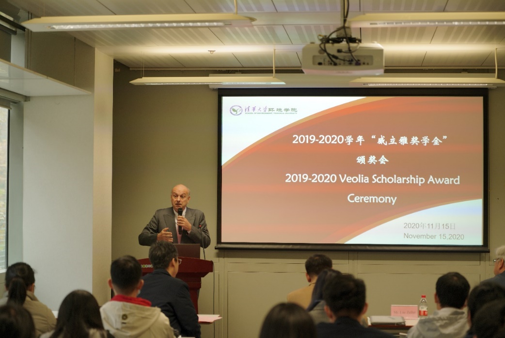 首先,威立雅亚洲区高级执行董事左律克代表威立雅集团致辞,介绍了威立雅集团在中国及全球开展的业务,回顾了多年来与环境学院的良好合作关系,表示非常高兴能为环境专业拔尖创新人才的培养贡献一份力量,并期待双方继续深入合作,贡献中国环保事业。