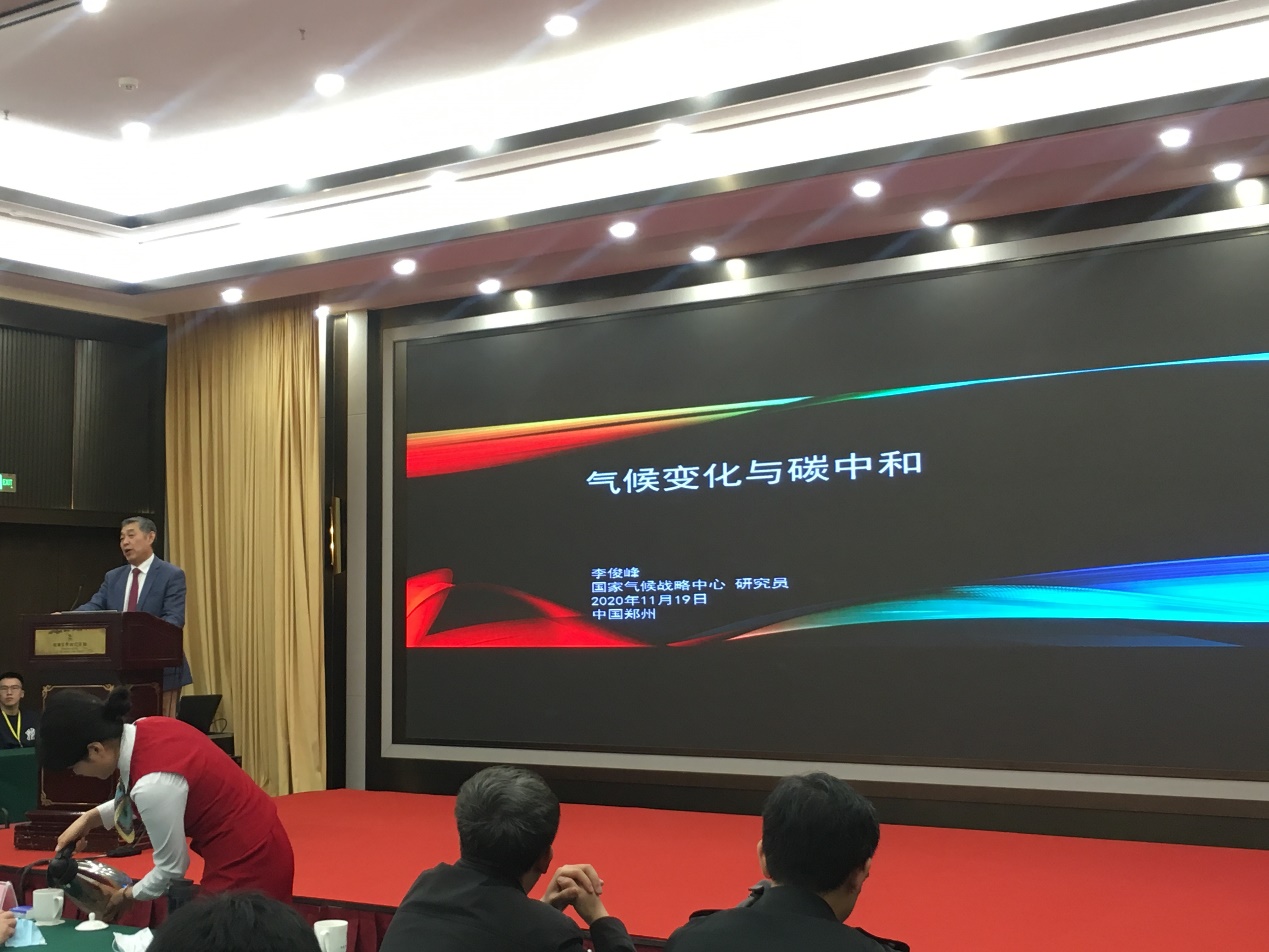 李俊峰主任报告的题目是《达峰目标和碳中和愿景与生态文明建设》。李主任指出气候变议题已经从科学认知转变为一种国际政治共识,从温室气体减排到碳中和的转变实际是一种发展和能源转型,为实现能源资源脱钩。碳中和的本质是告别资源依赖走向技术依赖。