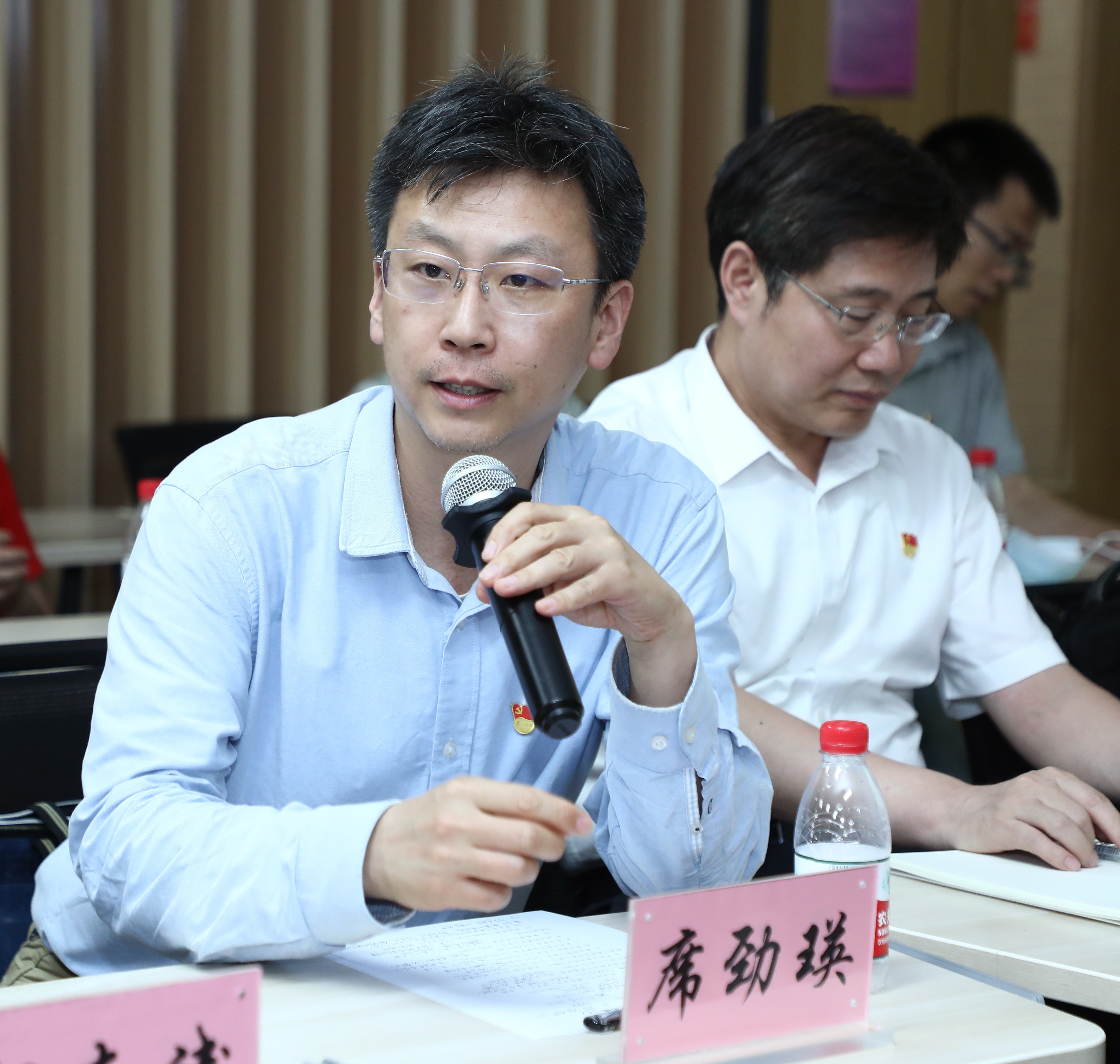党员代表刘会娟在发言中表示,水生态中心党支部在党建和党史学习工作中将支部建在团队上,把党的工作与业务工作紧密结合,注重在工作中学习党史,在党史学习中促进工作。水质与水生态中心在服务长江大保护战略工作中,成立党员先锋队,在困难面前冲锋在前。同时在工作的间隙积极利用长江流域的红色教育资源开展党史教育。此外,党支部注重利用所开发的技术为脱贫攻坚做实事,开发的饮用水安全保障关键技术应用于内蒙古巴彦淖尔旗县30多座饮用水厂,解决了当地饮用水砷、氟等污染问题,服务人口33万,其中登记在册的贫困人口10万余人。而在技术开发和成果落地的过程中,中心也注重引导党员教师和研究生共同参与,潜移默化地促进了研究生正确价值观的树立。