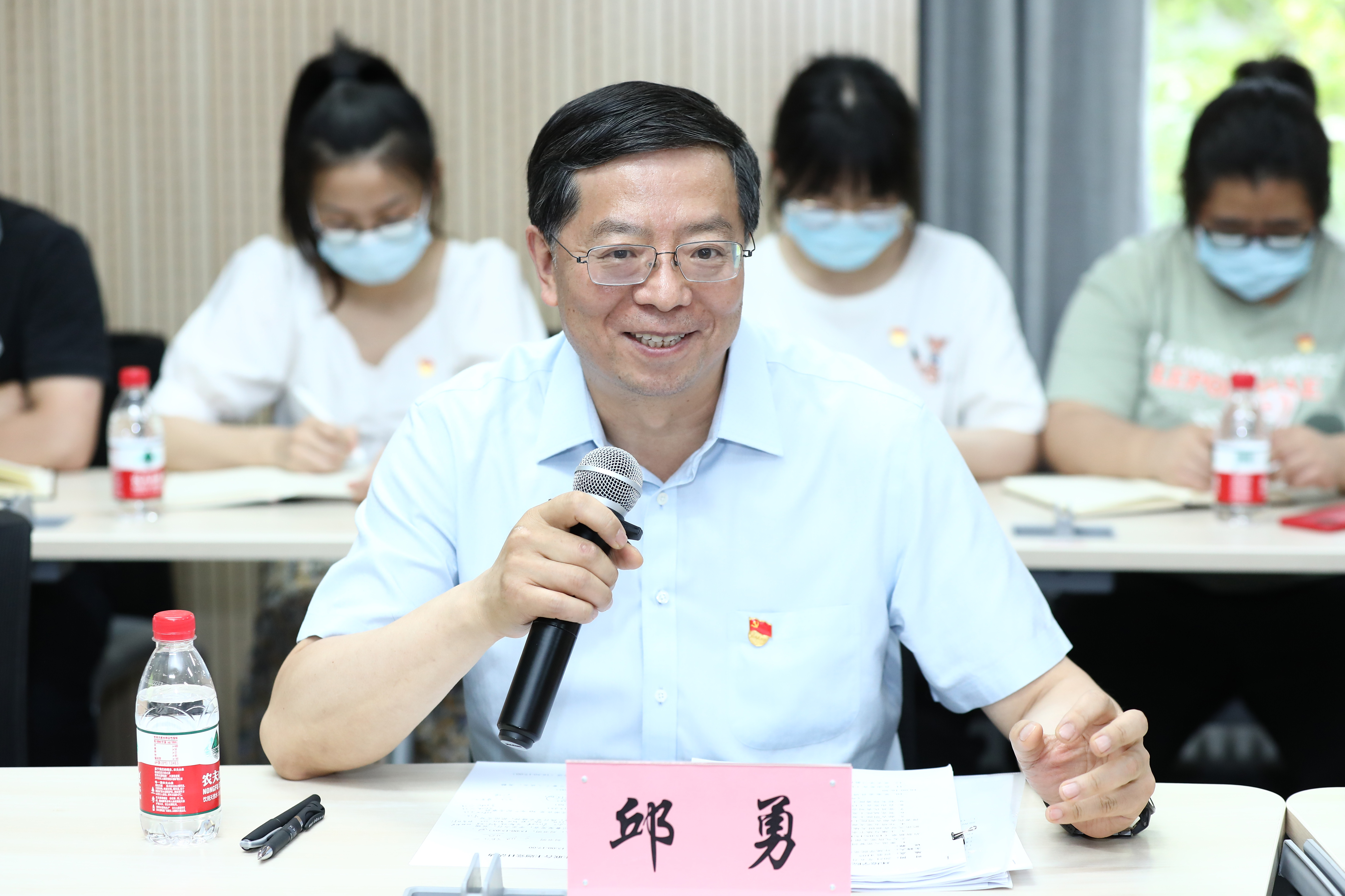 邱勇在听取了大气所党支部、土壤与地下水所党支部工作介绍并与党员交流后发表讲话。邱勇表示,希望大家以此次主题党日活动为契机,做好三个回顾:回顾入党誓词,不忘入党初心;回顾入党时间,今昔对比感悟变化;回顾成长历程,感恩党的培养,进一步坚定理想信念,迈向未来。邱勇还分享了自己对学史明理、学史增信、学史崇德、学史力行的理解,并期待环境学院紧扣国家实施“双碳”目标带来的机遇与挑战,主动请缨,勇担使命,探索制定清华相关战略规划,为国家高质量发展作出更大贡献。