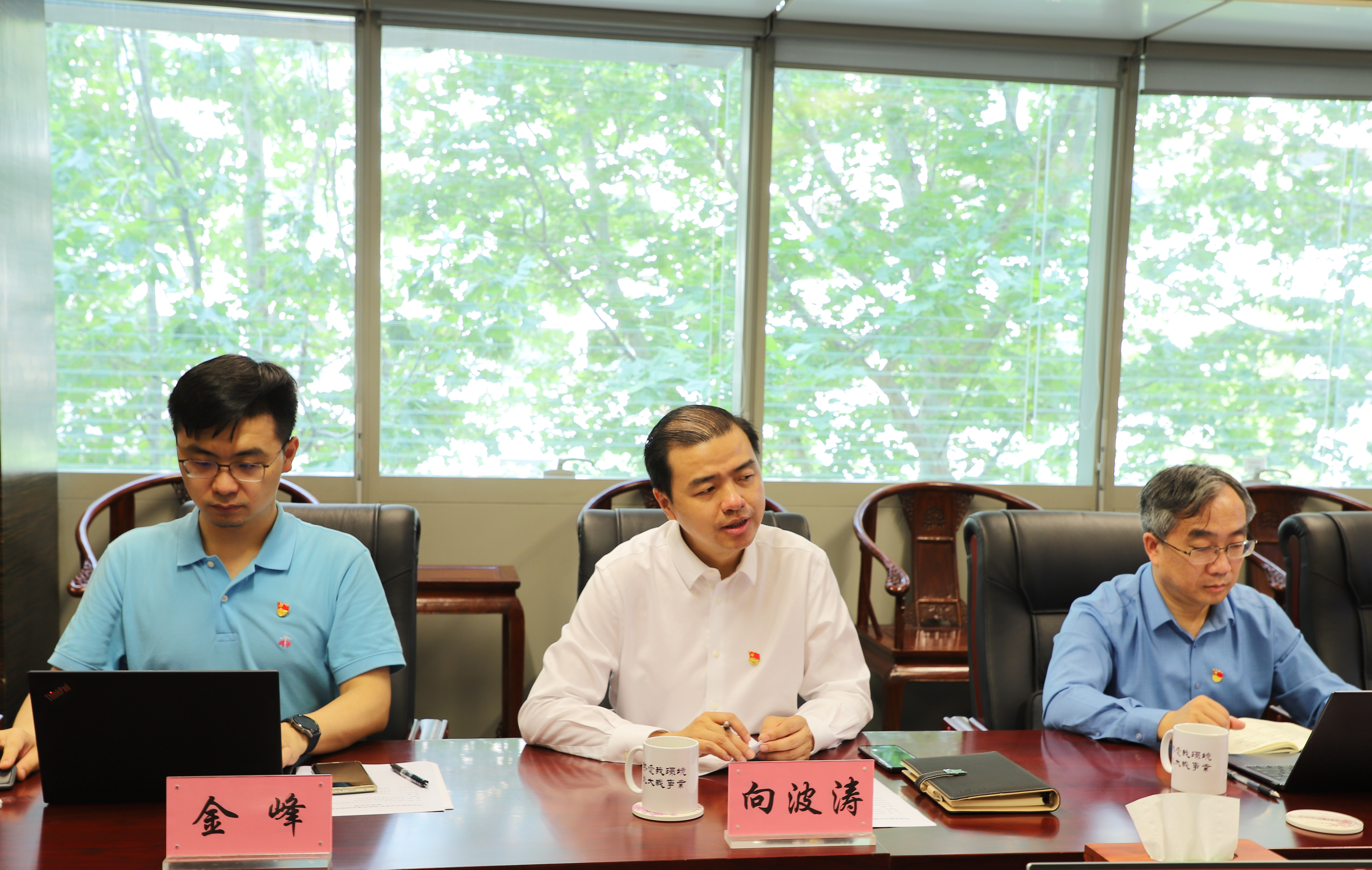 向波涛在听取环境学院宣传思想工作汇报后指出,环境学院党委高度重视宣传思想工作,并将宣传思想工作与专业特色紧密结合,在实践中形成了一些好的经验和行之有效的做法。他表示,学校将为各院系更好地开展宣传思想工作提供多方面的有力支持,希望环境学院进一步总结好的经验做法,再接再厉,在理论学习全覆盖、在线会议意识形态管控等方面采取有效措施,全面做好宣传思想工作。
