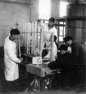 在进入实验室之前,许先生已经设计好所有的实验装置,先生家里有一张绘图桌,备有丁字尺、三角板等绘图工具,亲自绘制设备加工图纸。按照许先生制定的实验方案,在周莲溪和苏尚连老师的辅导下,实验工作按部就班地推进。实验进行中,许先生和我们一起观察、讨论。遇到难题,他还经常自己动手操作。以前大家只在课堂上见到过许先生,同学们都觉得他为人严肃、难以接近。进入课题组后,几天时间就改变了大家的想法:许先生对学生严格要求,但平易近人。