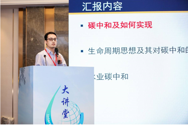 密西根大学环境与可持续性学院教授徐明分享了“碳中和与生命周期思想”报告。报告聚焦碳中和实现路径和生命周期思想及其对碳中和的意义等,介绍了饮用水及污水处理碳足迹比较、碳足迹核算方法等,并指出应当采用生命周期思想,从消费端促进供应链减排。
