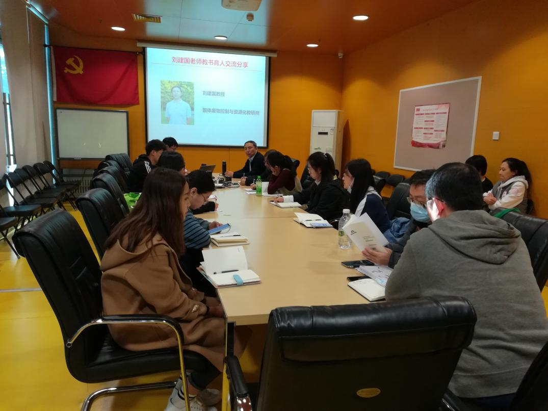 首先,党支部邀请清华大学“良师益友”、“刘冰奖”获得者刘建国老师结合自身工作经历从三个方面分享了教书育人经验:一是爱学习,勤思考。刘建国老师回顾了许保玖先生、王占生先生等老一辈环境人对中国环保事业作出的贡献,表示当代教师应以他们为榜样。同时,他指出,随着技术的进步,教师还需要学习新知识,勤思考,实现知识的更新迭代。不同年龄段的感悟不同,因此不管是在科研还是教学中,教师都需要学习新知识,实现个人及社会价值。二是负责任,做表率。教书育人是教师的第一要务,他强调,教师应该在人才培养上做好表率,带好学生队伍,体现出责任和担当。同时,教师也有责任为公共社会科普自己所属领域的正确科学技术观念。三是重感情,有温度。在跟学生相处的过程中,教师要注重建立情感,做到公平公正对待,针对每个学生的特点做好科研分配。教师在学术上,既是导师又是合作伙伴;在生活上,既是长辈又是朋友;在学生职业生涯上,要做好铺路石和扶手梯,身体力行,做好导师的职责。参会党员结合自身教学经历及感触与刘建国老师进行了深入的交流。