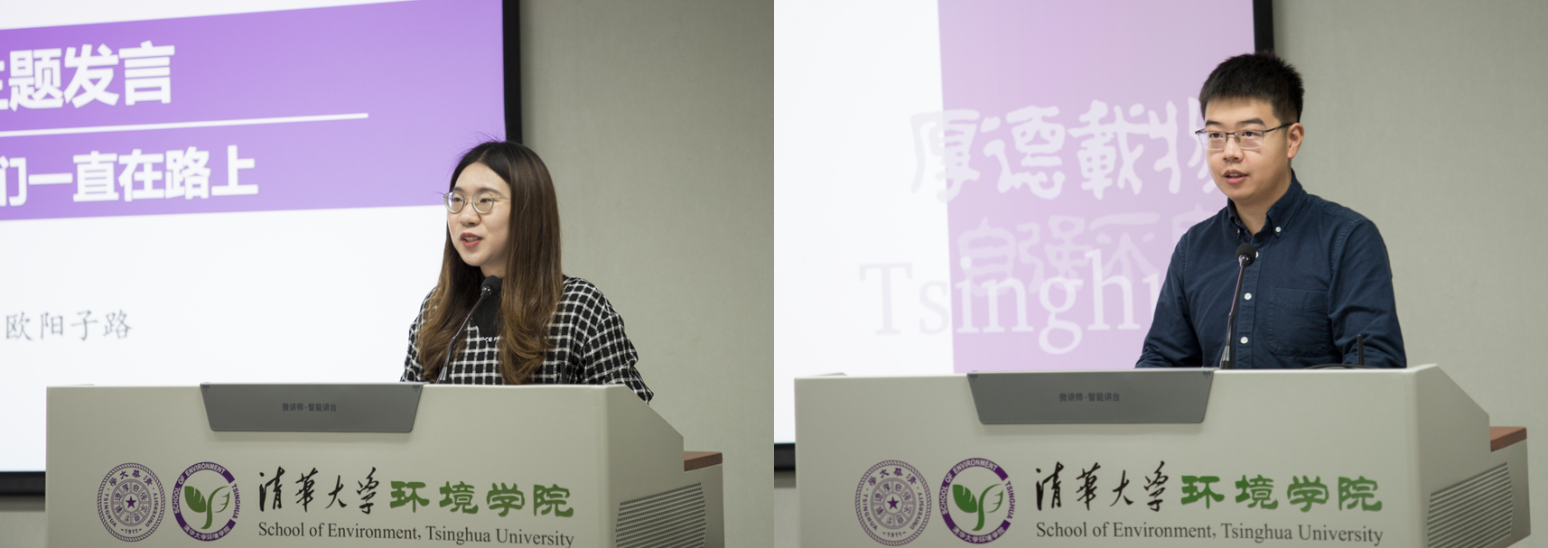欧阳子路(左)、宋泽群(右)分别介绍学院本科生和研究生实践情况