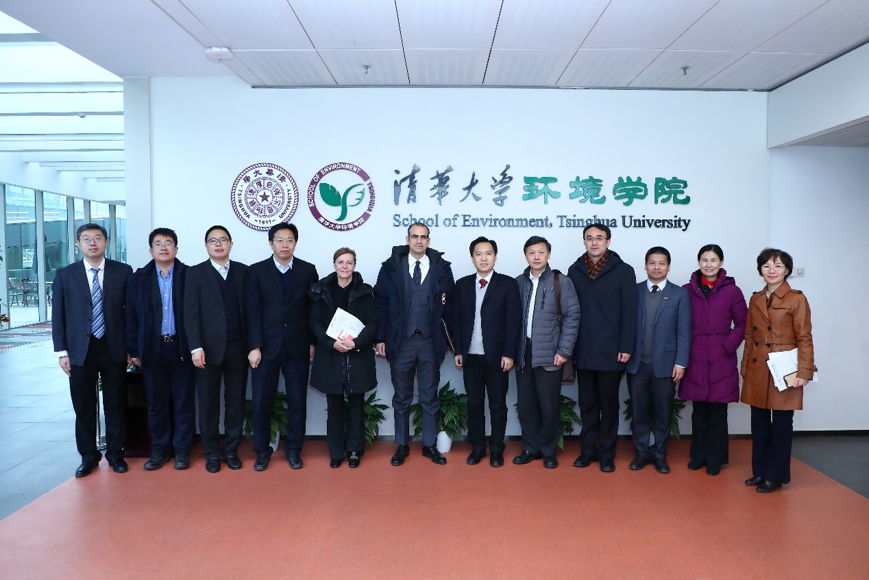 刘书明对意大利驻华大使馆代表团来访表示热烈欢迎,并简要介绍了环境学院历史沿革和发展成就,指出院馆迁至中意清华环境节能楼后学院在学科建设、人才培养及国际合作等方面取得了快速发展,重点回顾了与意大利威尼斯国际大学和帕多瓦大学在人才培养方面富有成效的合作,提出了未来进一步深化交流合作的设想。