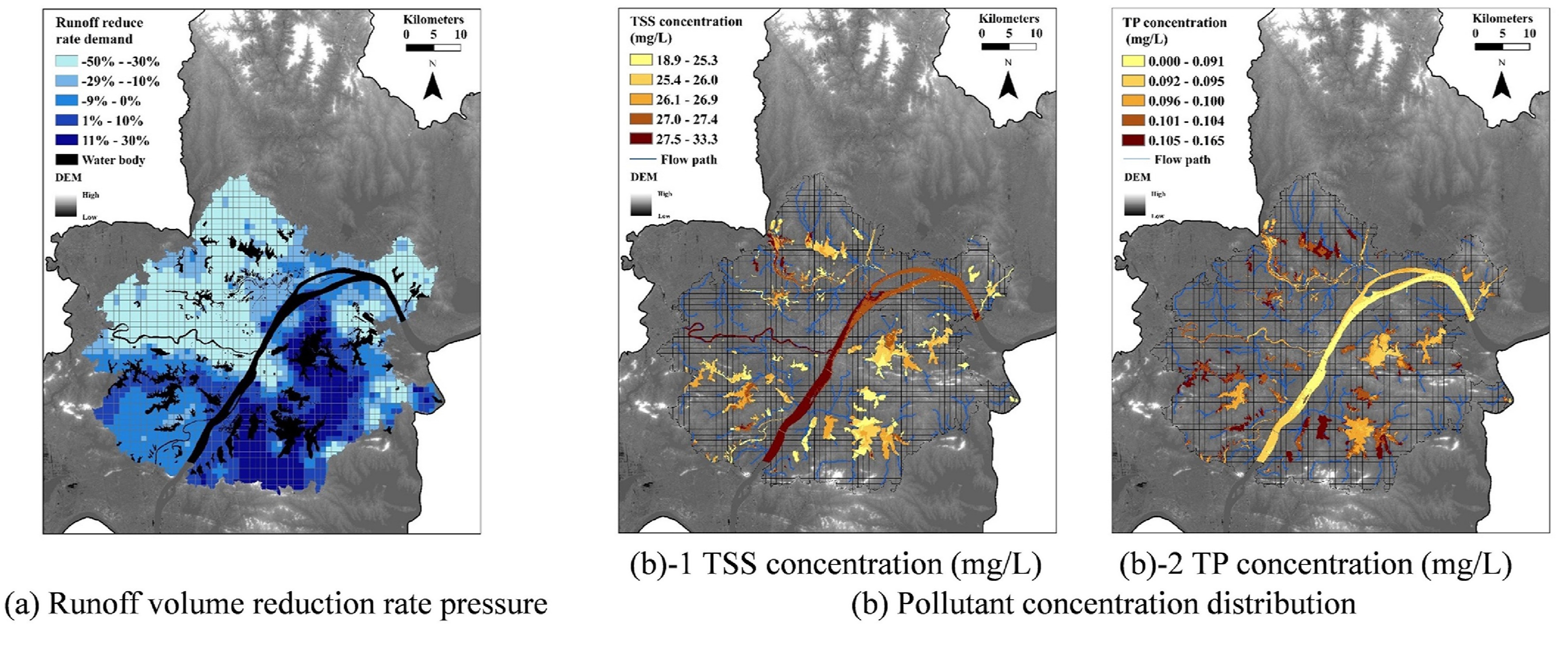 在环境因素方面,受纳水体的蓄水能力和水质自净能力呈现出空间不均衡性,导致区域径流水量水质调控压力的紧迫性呈现空间异质性。定量化的区域水量水质压力分析可用于指导径流控制基础设施补偿性方案的制定。同时,依据该研究成果,可提出针对性的空间径流调控方案。