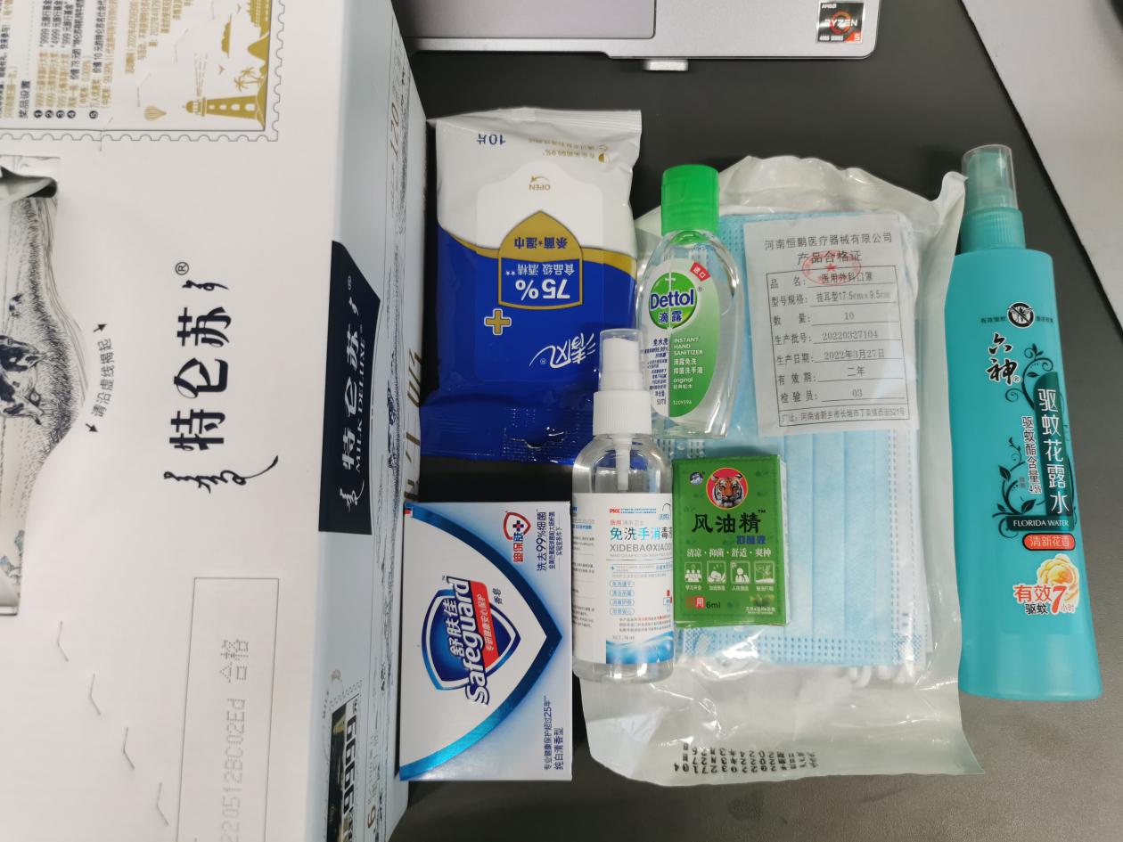 今天收到学院准备的物资,真的感受到满满的暖意。物资的准备十分精心,牛奶、湿巾、洗手液、消毒液、风油精、香皂、口罩、花露水……从食品到防疫物资再到防暑物资,可以感受到学院确实是在为我们同学的生活考虑,用心准备了这些礼物。骄阳似火,正如学院老师、同学们的爱心如火;病毒无情,却烘托出学校和学院的饱满热情。