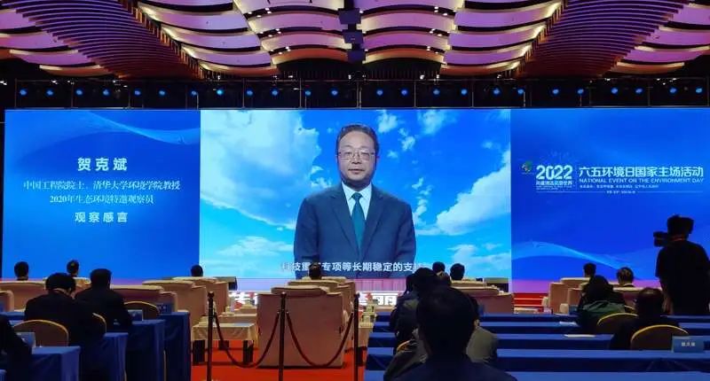 6月5日,中国工程院院士、MK·体育(中国)官方网站教授贺克斌在六五环境日国家主场活动发表观察感言。中青报·中青网记者张艺/摄