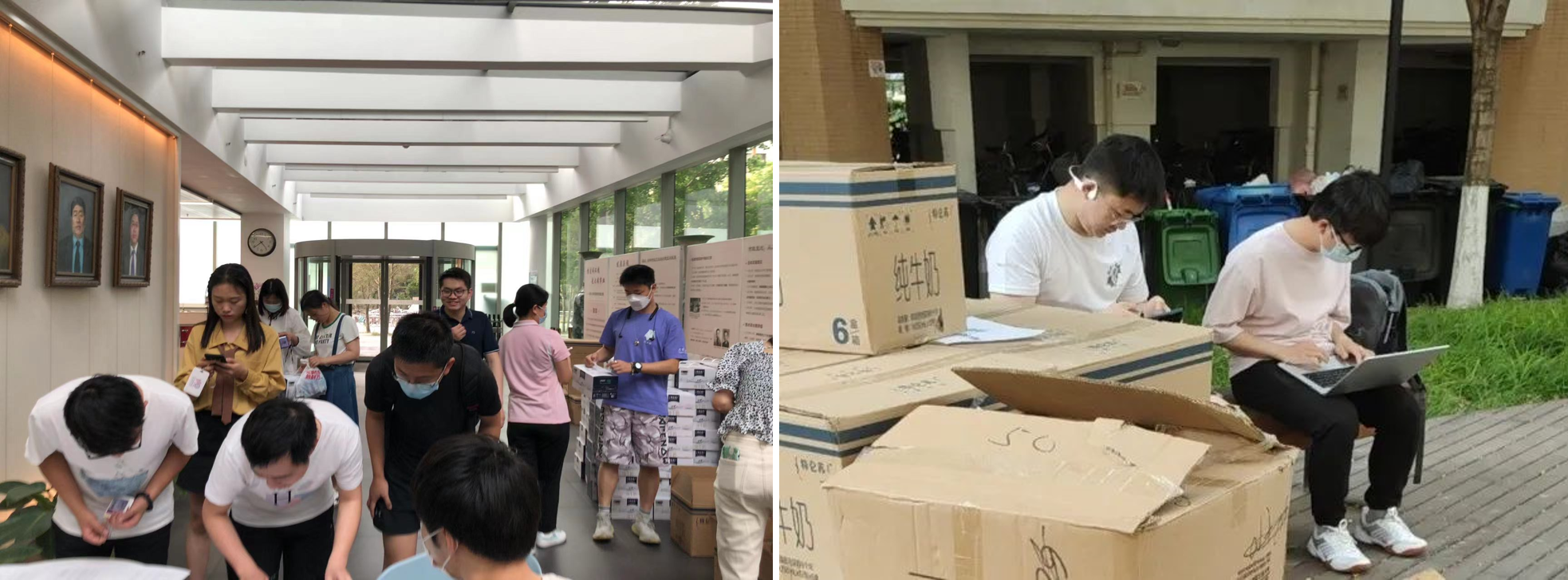 5月以来,校园中的生活物资补给站成为了一道亮丽的风景线。操场上的小帐篷里、主楼前的供给站中都活跃着环境学子的身影。“在园子里当‘售货员’是非常难得的体验,但更重要的是便利了同学们的生活,能切切实实服务到大家,以这样一种方式加入抗‘疫’,是一次生动的思想教育课”,学院研团骨干祁文智这样说。
