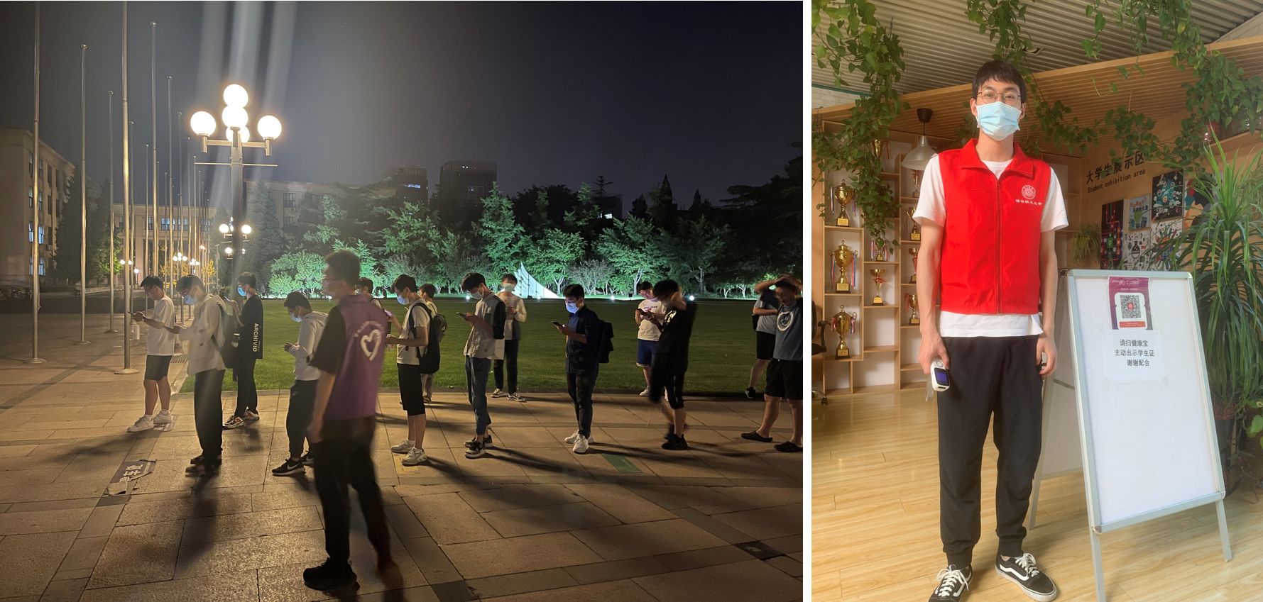 志愿者们到达核酸检测点之后,听从现场负责老师指挥调度,积极主动接受点长岗位培训,学习各自点位流程要求。核酸检测中,有的同学作为现场引导志愿者,负责预约和入口道路指引和出口疏导,维护现场秩序;有的同学作为信息录入志愿者负责预约信息录入,保证核酸检测的有序性和准确性。已经第三次参加核酸检测志愿服务的环博213班博士生师曜表示,“虽然辛苦,却甘之如饴,仍然感到非常充实,我相信不久就可以‘守得云开见月明’,取得疫情防控阻击战的胜利”。