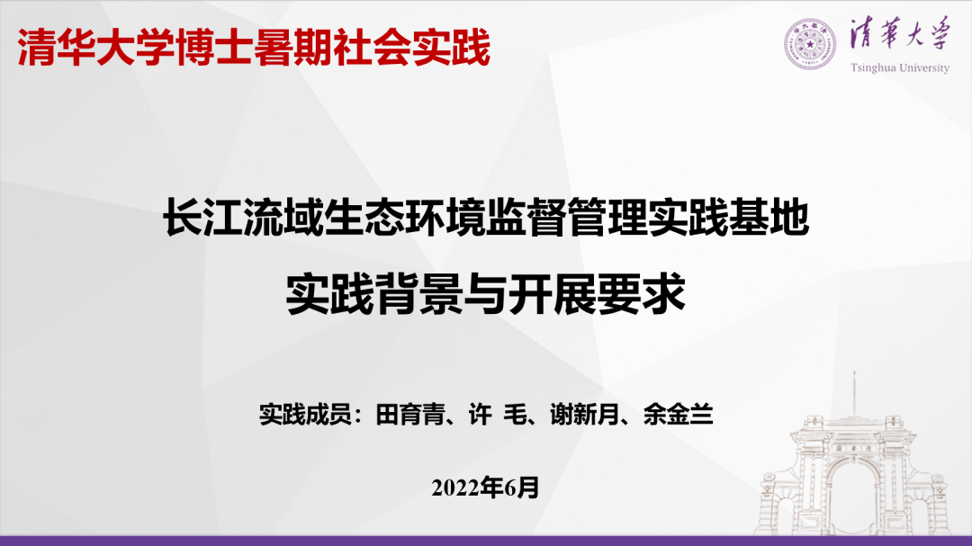 邱光胜代表实践基地致辞。他指出,清华大学作为我国顶尖高等学府的代表,本着“自强不息,厚德载物”的育人精神,培育了一大批具有勤奋、进取、争创一流精神的清华学子。他表示,长江局监测科研中心将通过一对一的实践选题和导师一对一指导为同学们提供高质量的社会实践平台。同时,他也对参与实践的4位博士生提出了殷切希望,希望同学们在本次实践过程中发挥专业优势,充分利用长江大保护实践平台,为中国生态文明建设贡献力量。