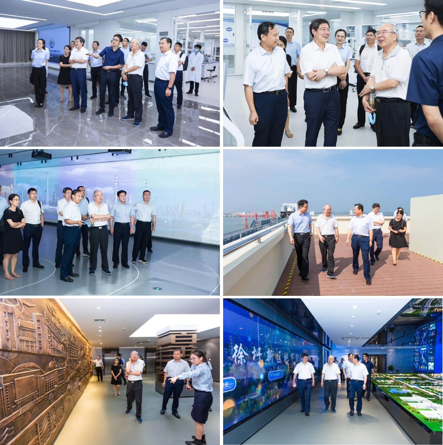 郝吉明一行首先在连云港石化基地运管服务中心认真听取了园区规划建设、技术创新、智慧管控等情况,重点调研了徐圩新区生态环境质量管控中心关于新区在环境综合治理领域的体系建设、问题诊断、平台创新和技术研发四大举措,并深入了解了徐圩新区与清华大学联合攻关项目建设情况。随后,郝吉明一行深入一线,调研了工业废水综合治理中心生态湿地、徐圩新区地下综合管廊。