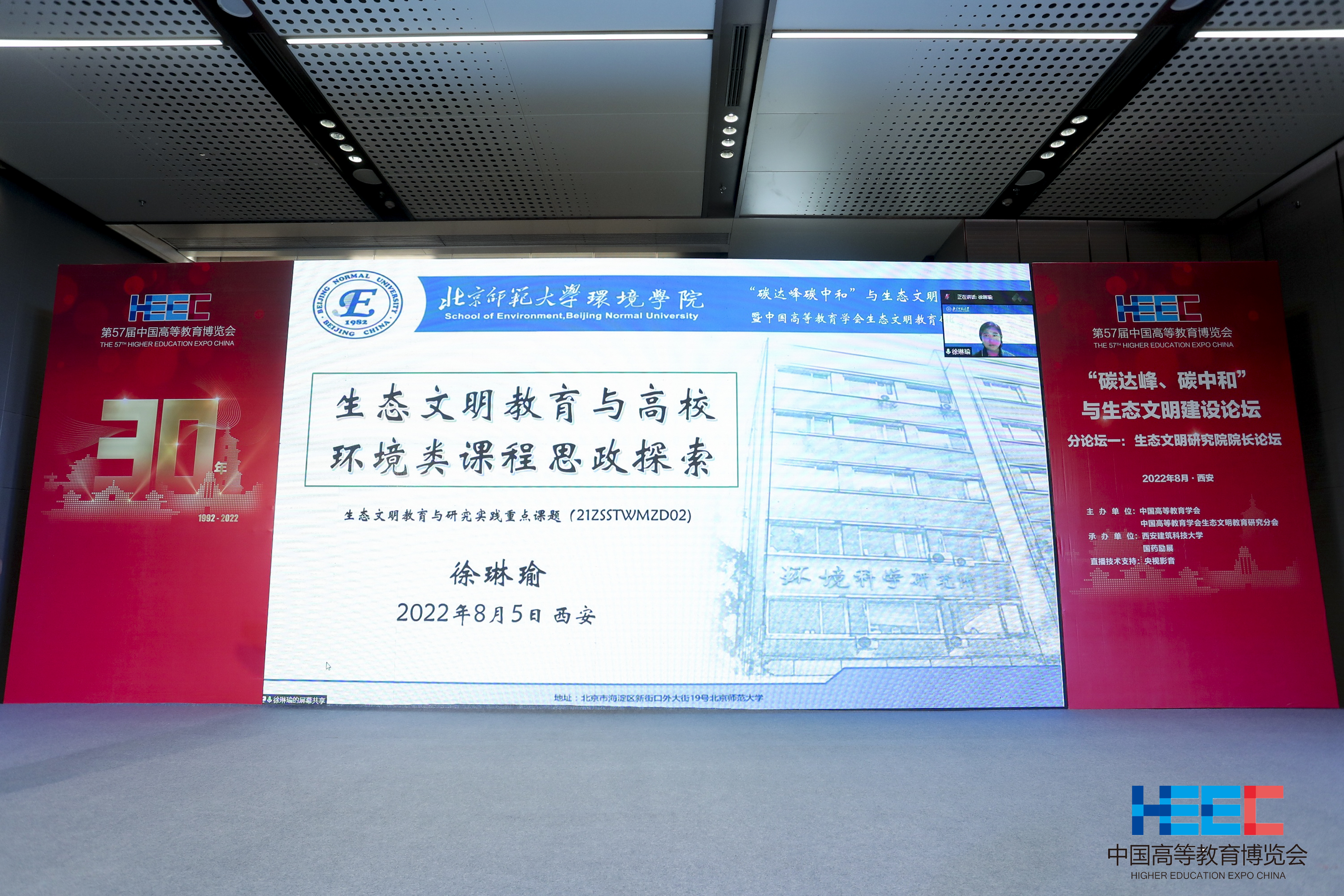 徐琳瑜通过线上以“生态文明教育与高校环境专业课程思政探索”为题作报告。她表示,可持续发展教育与生态文明教育的演化是一脉相承的,都是为了促进社会经济可持续发展和教育实践发展;希望各高校能够共同推动生态文明教育,服务五位一体战略需求,把生态文明教育融入到高校环境专业教育育人的全过程。