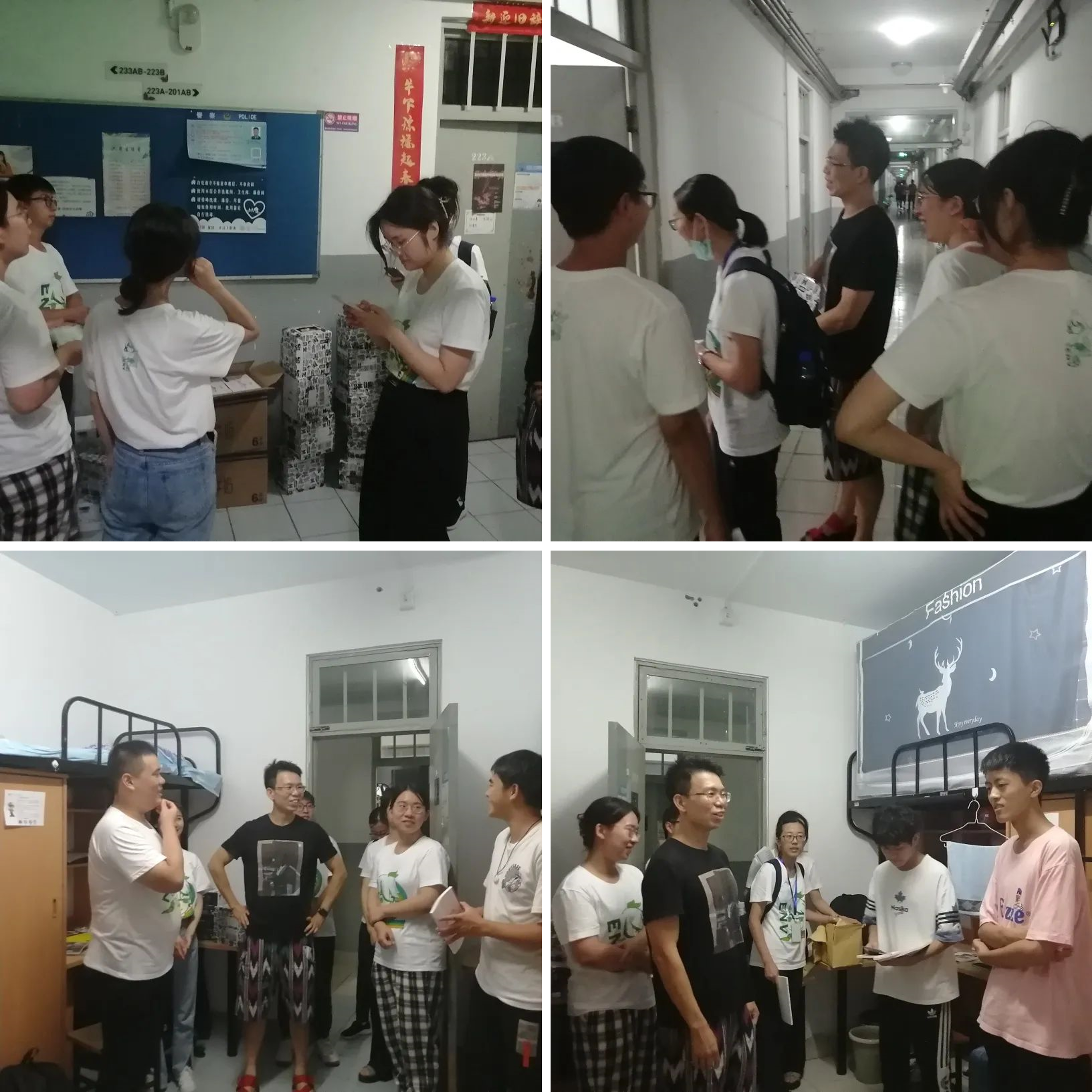 晚上20:00,学生工作组组长张少君老师和辅导员们为新同学们送去了慰问物资,询问新同学们第一天入住的情况和感受,为同学们送去问候与温暖。