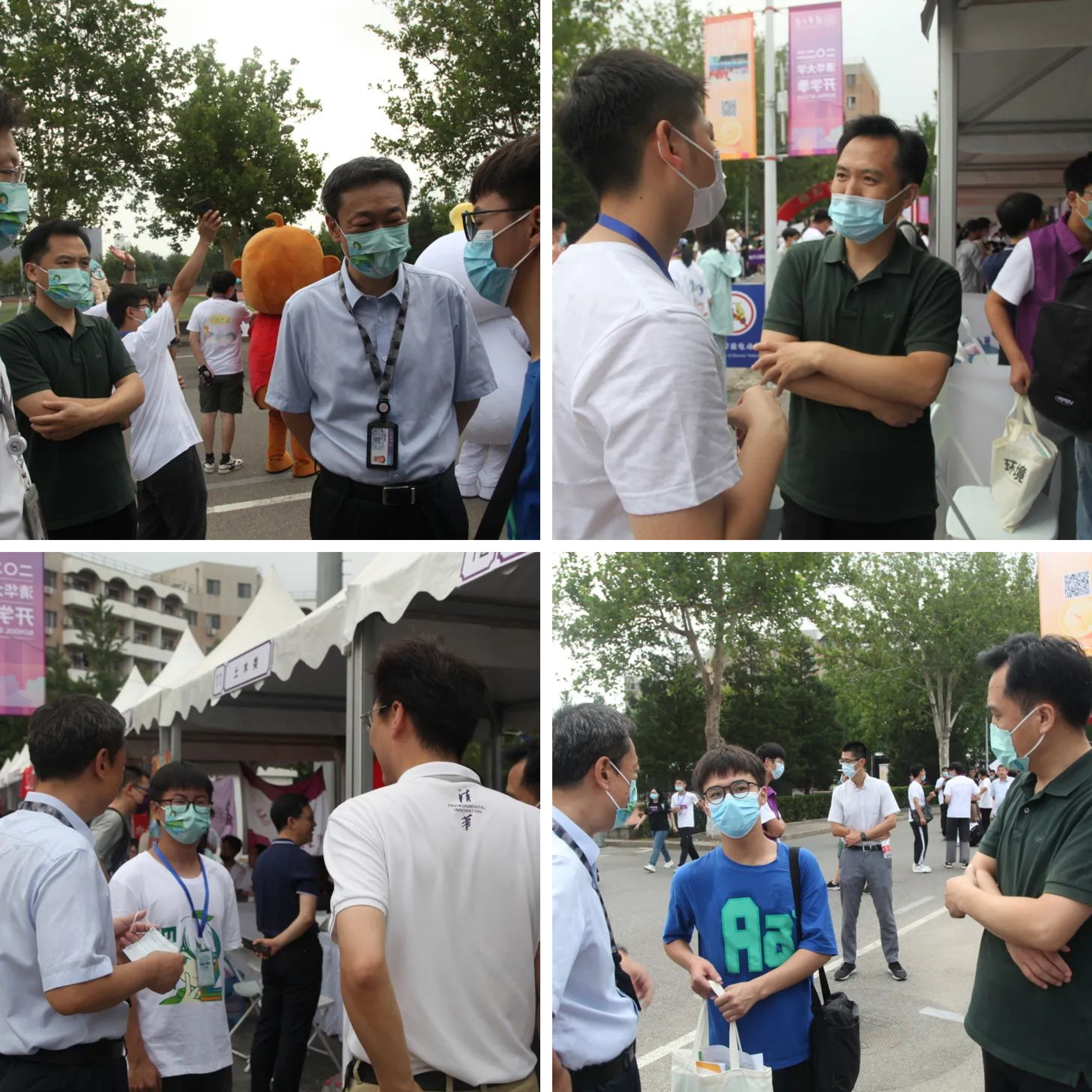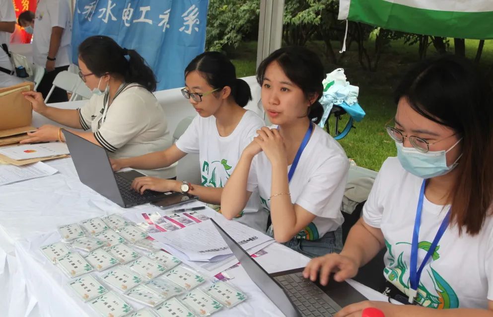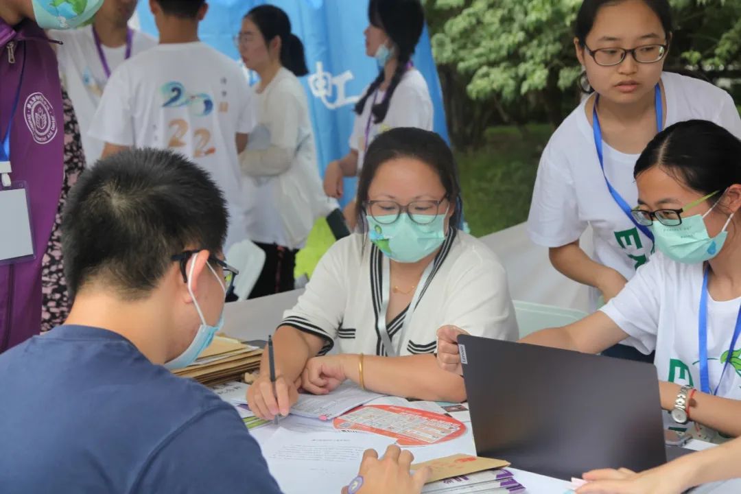 环境学院院长刘毅老师、党委书记刘书明老师、党委副书记席劲瑛老师、学生工作组组长张少君老师来到迎新现场与新同学和志愿者交流,了解新生基本情况与迎新志愿工作情况。
