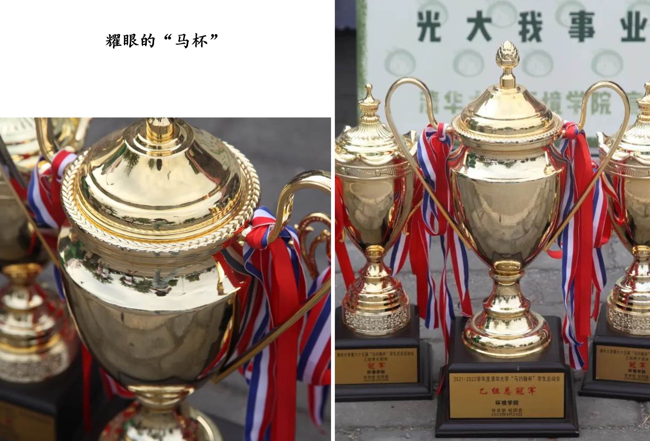 “无体育,不清华”,五道口体校名声在外,体育运动自然是清华不可缺少的一部分。而环境学院更是有着深厚的体育传统,曾多次捧起“马杯”,“马杯”这位老朋友对我们来说再亲切不过了。期待刚刚加入环境大家庭的你们,一起续写环境学院“境技传说”新的辉煌篇章!