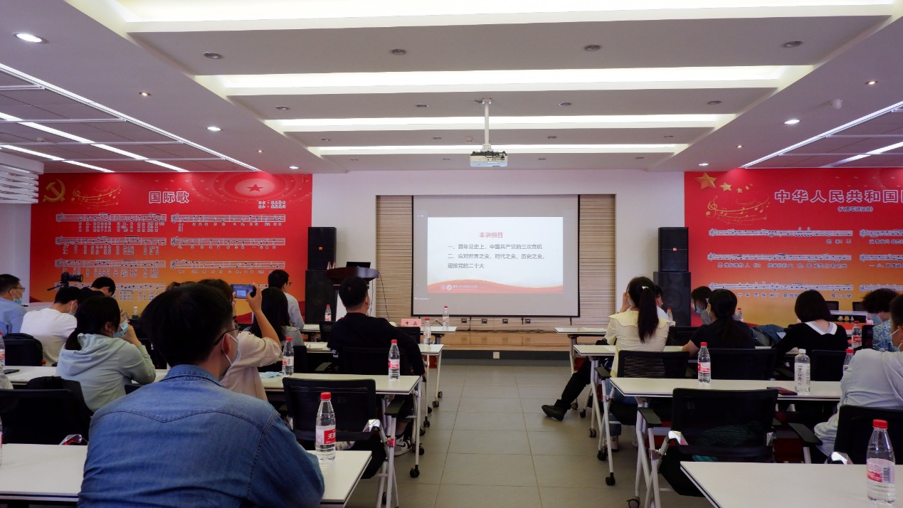 回望百年党史的三次危机,如何总结中国共产党化危为机的智慧?应对世界之变、时代之变、历史之变的新时代中,怎样迎接党的二十大?清华大学博士生讲师团讲师牟雨璇为大家作“领悟百年党史智慧 喜迎二十大召开”主题宣讲。她详细介绍了中国共产党在面临1927年大革命失败、1933年第五次反围剿失败、1937年抗日战争爆发三次危机时的处理情况,总结了中国共产党在三次危机处理中的智慧,并倡议广大青年继承和发扬先辈精神,勇担民族复兴重任,争做时代新人。