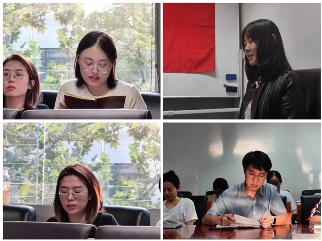 王江珊、董馨阳、谭旖旎和魏泽洋四名博士研究生作为环研五党支部的学生代表,汇报了参与“双碳”研究的成长与感悟。他们生动地分享了学习和科研实践中的点滴故事,回顾了自己深入学习党中央对“碳中和”“碳达峰”工作系统谋划和总体部署的相关经历和认识理解。他们表示,未来必将肩负期望、积极行动,在“双碳”征程中牢记使命,成长为能堪大任、勇挑重担的年轻人才,展现了青年人心怀祖国、敢于担当的昂扬风貌。