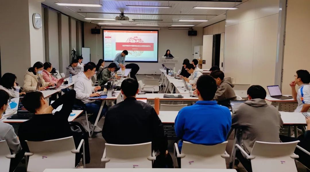 思想就是力量,旗帜就是方向。党支部书记王婧霏首先对习近平新时代中国特色社会主义思想进行了总体介绍,帮助同学们领悟学习的重要意义。习近平新时代中国特色社会主义思想是在中国特色社会主义进入新时代的历史条件下形成的,在新的发展阶段、社会矛盾和奋斗目标背景下,开辟了马克思主义中国化时代化新境界。通过学习习近平新时代中国特色社会主义思想的理论逻辑和历史逻辑,同学们对学习和践行党的理论的重大意义有了更加深入的认识,对“思想建党,理论强党”的原则有了更强的认同感。王婧霏建议同学们在理论学习中要“真学、真懂、真信、真用”,做到学思用贯通、知信行统一。