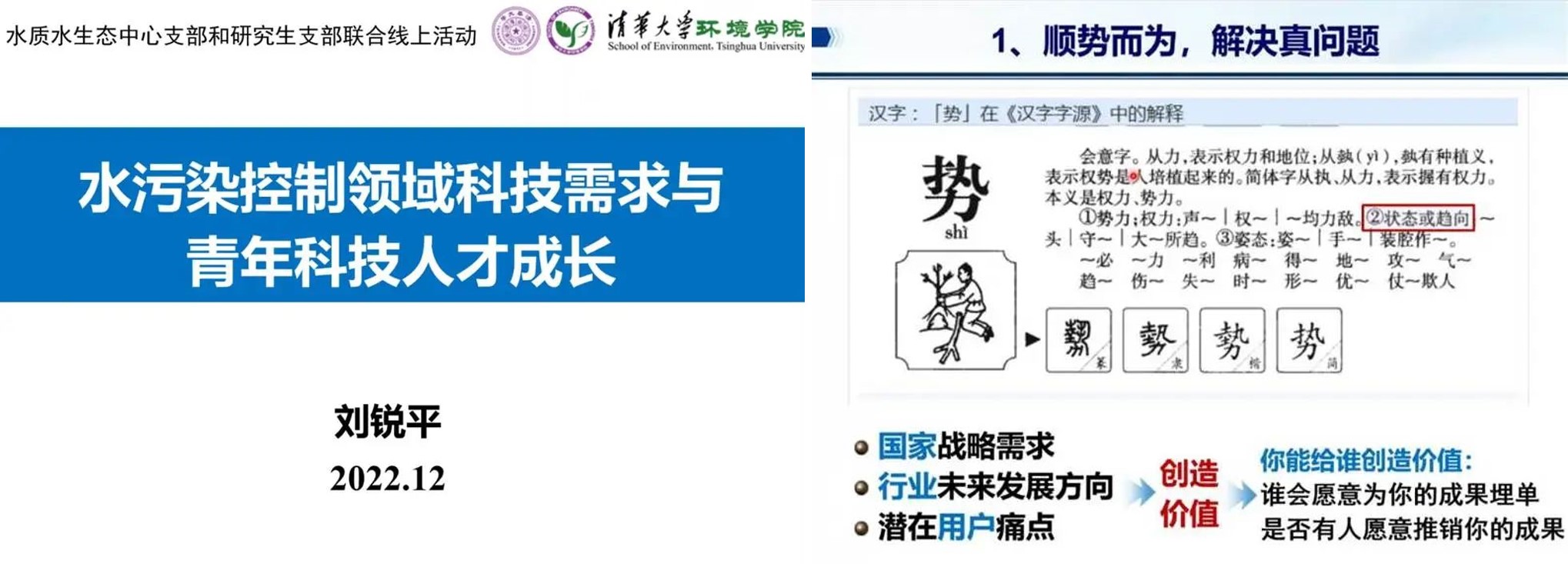 刘锐平从我国科技创新面临的新形势、水污染控制领域科技需求、环境青年人才成长建议三个层面作报告。他强调,科技、创新、人才已成为中华民族伟大复兴的核心推动力,由此,党的二十大报告提出,要开辟发展新领域新赛道,不断塑造发展新动能新优势。在科技人才评价指标体系正发生重大变化的背景下,青年科技工作者应更加面向国家环境保护事业的重大需求,注重开展原创性、引领性、交叉型、有利于实现从0到1的研究。《关于推进污水资源化利用的指导意见》指出,2035年我国要形成系统、安全、环保、经济的污水资源化格局,这些利好的宏观政策可推动环境产业的新需求,而创新在技术装备产业化中将发挥核心支撑作用。创新型技术研发须有明确的应用场景与客户群体,要为用户提供完善的解决方案,包含成本经济性要素且技术可应用、可复制迭代。
